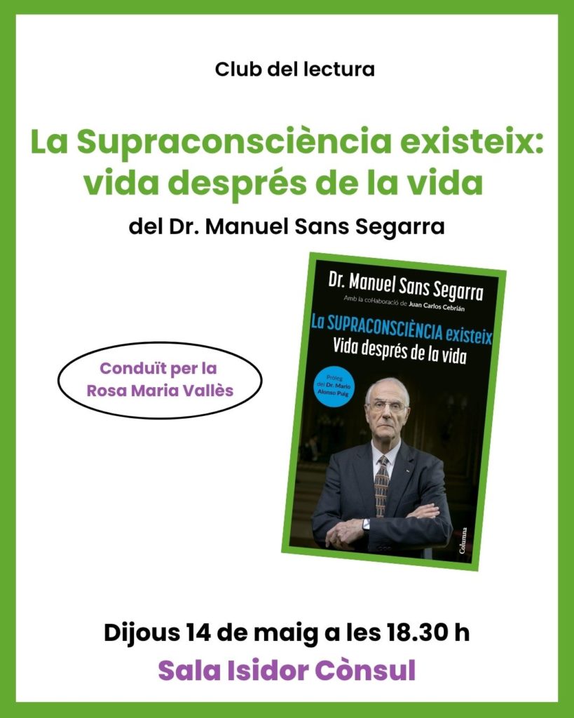 Club de lectura sobre “La Supraconsciència existeix: vida després de la vida” del Dr. Manuel Sans Segarra, conduït per Rosa Maria Vallès, en col·laboració amb la casa de cultura Can Ginestar.