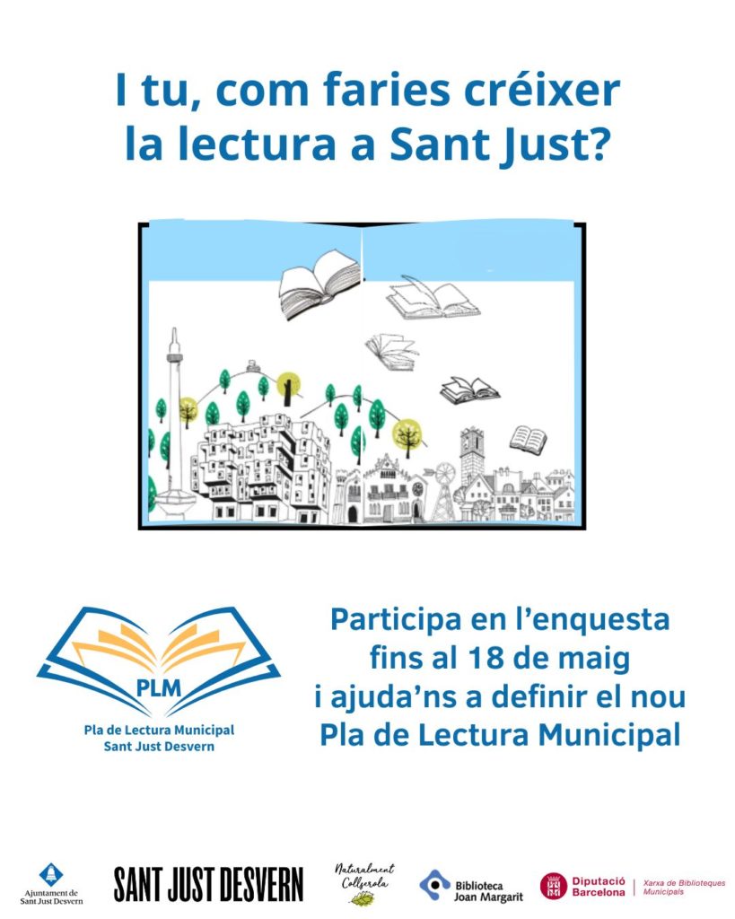 L’Ajuntament de Sant Just Desvern, en col·laboració amb la Diputació de Barcelona, està elaborant un pla de foment de la lectura per tal d’ampliar els públics lectors i respondre millor als seus interessos.