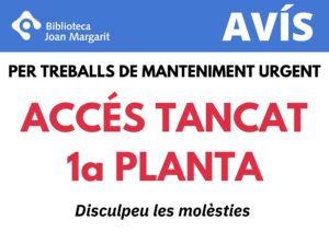 Accés tancat al 1r pis de la biblioteca per tasques de manteniment urgent.